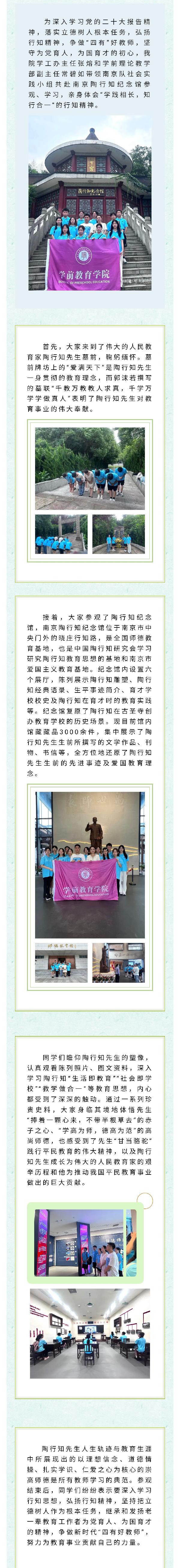 社会实践|“活水溯源,立德树人”追溯师德敬先贤——学前教育学院开展南京暑期社会实践活动