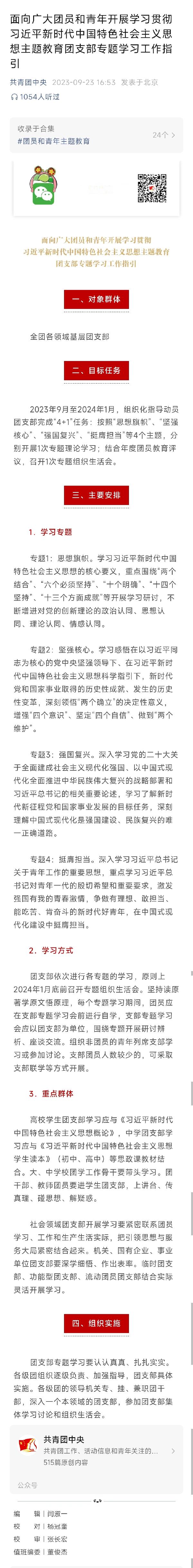 面向广大团员和青年开展学习贯彻习近平新时代中国特色社会主义思想主题教育团支部专题学习工作指引