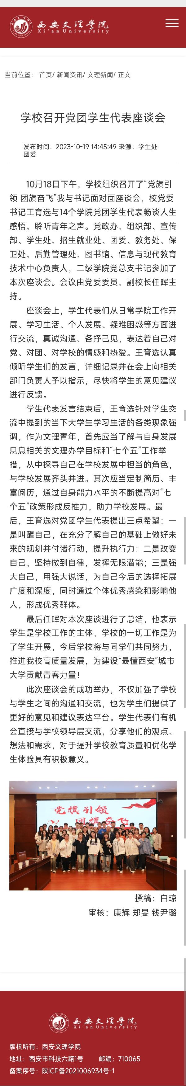 学校召开党团学生代表座谈会