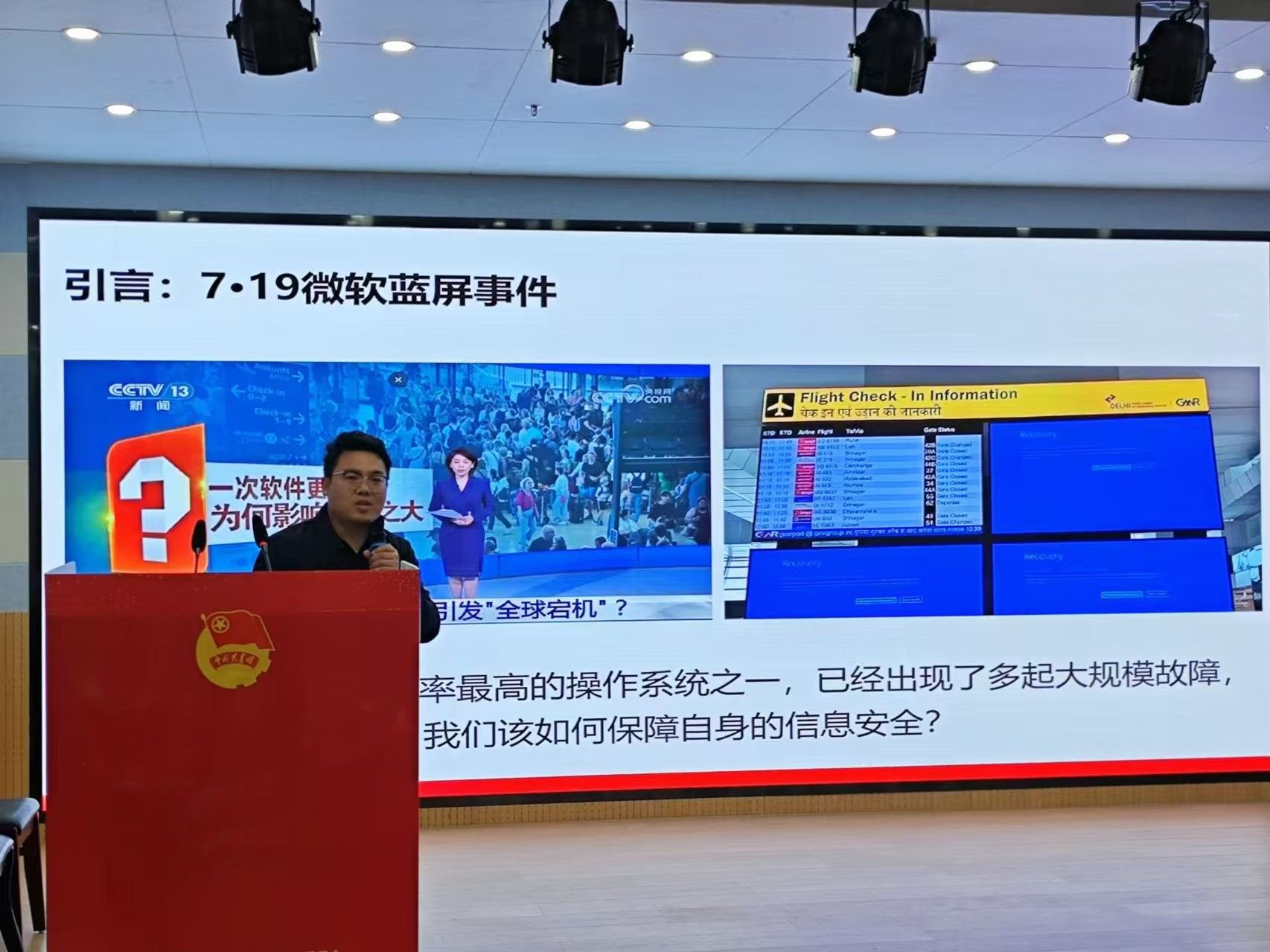 本次宣讲邀请四叶草安全创研中心校企合作运营总监、数字丝路安全智库副秘书长、陕西省计算机学会2023年度优秀学会工作者唐大春带来题为《建设网络中国,护航数字中国》的精彩宣讲。他结合自身就业故事、丰富经验和实际案例,从“数字化带来的社会问题”“时代的发展脉络”以及“信息时代的双刃剑效应”三个维度,深入浅出地剖析了当前网络安全的严峻形势,强调了深入贯彻学习网络安全观对于国家发展和个人安全的重要性,呼吁大学生主动到基层一线“自找苦吃”、踏实奋斗、成长成才。
