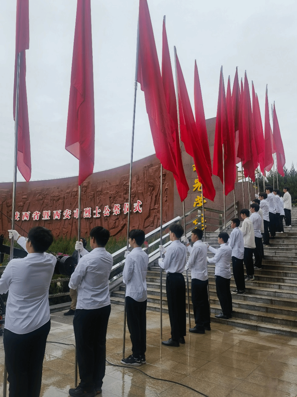 9月30日,陕西省暨西安市烈士公祭活动于西安市烈士陵园举行。省直及西安市有关部门、人民团体负责同志,各民主党派、无党派人士代表,烈士亲属、军队离退休老战士、解放军指战员、武警官兵、公安干警、消防救援指战员、优秀共产党员和党务工作者、全国和省市劳模、优秀退役军人、大中小学生等各界干部群众代表参加公祭活动。在校团委指导下,机械与材料工程学院遴选80名优秀学生代表作为本次公祭活动的大学生代表和仪仗旗手,同社会各界人士一起深切缅怀革命先烈建立的不朽功勋。