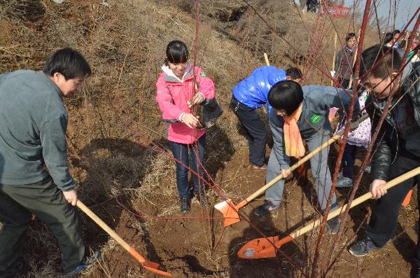 3月9日上午9时30分,我校青年教工及校学生会、社团联合会130余名师生志愿者在副校长韩权、王晓萍的带领下,赴蓝田县汤峪镇参加了“感恩秦岭,我为秦岭植棵树”志愿义务植树活动启动仪式。