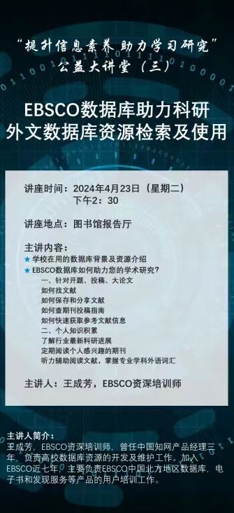 动主题:EBSCO外文数据库资源检索及使用 (三)